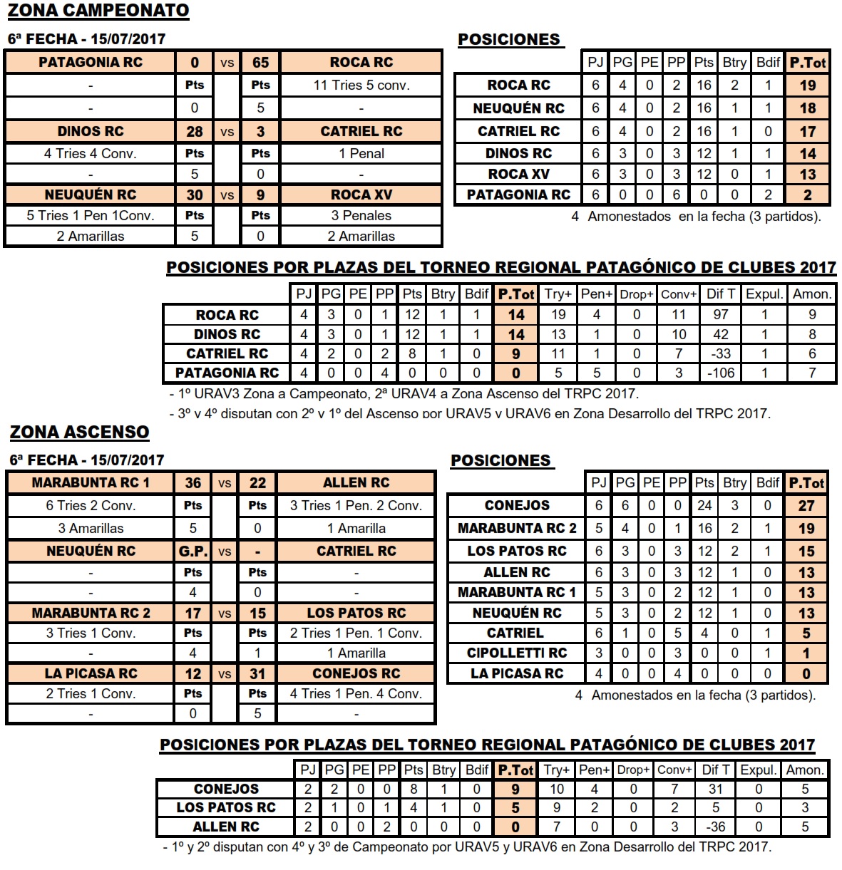 06 OFICIAL 2017 Resultados 6ª Fecha Campeonato