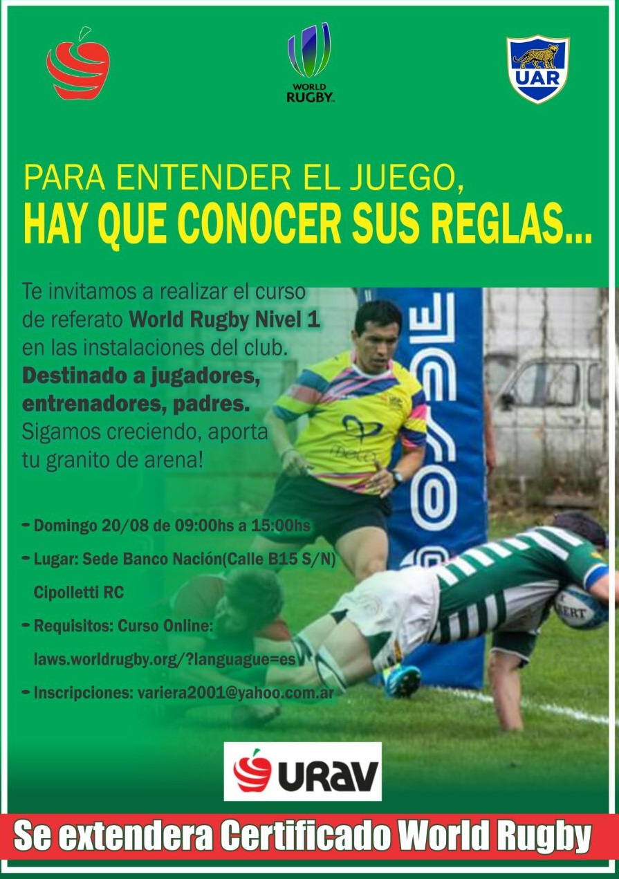 Nuevo Curso de Referato World Rugby Nivel I , programado para el próximo 20 de agosto.